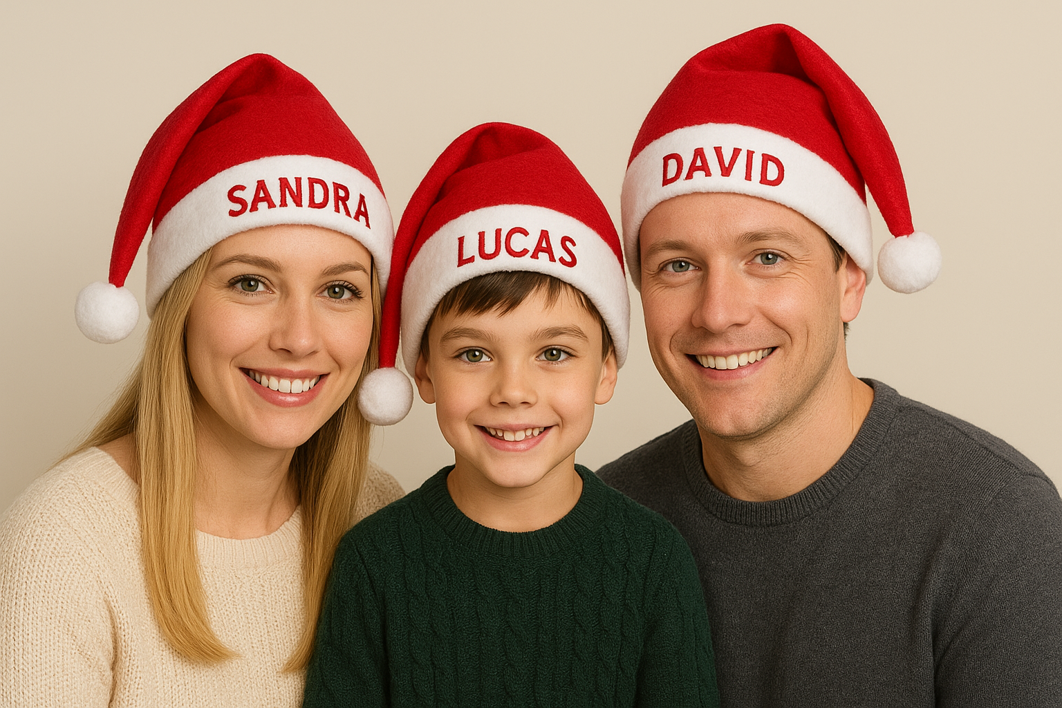 Gorros de Papá Noel personalizados, ideales para darle un toque único y especial a estas fiestas. Están confeccionados en tela suave, liviana y cómoda, con el clásico diseño rojo, borde blanco y pompón esponjoso. Cada gorro se personaliza mediante sublimación, logrando un acabado prolijo, duradero y con colores bien definidos.